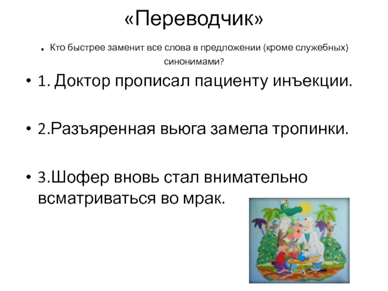 . Кто быстрее заменит все слова в предложении (кроме служебных) синонимами?