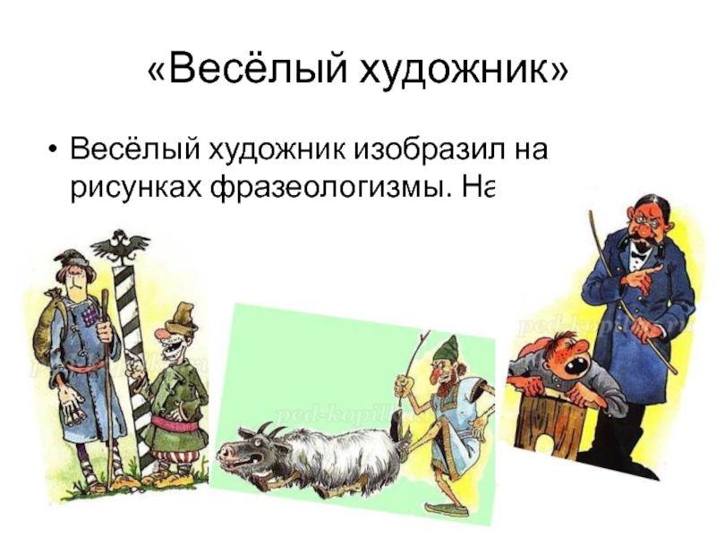 Весёлый художник изобразил на рисунках фразеологизмы. Назовите их.