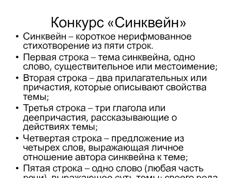 Синквейн – короткое нерифмованное стихотворение из пяти строк.