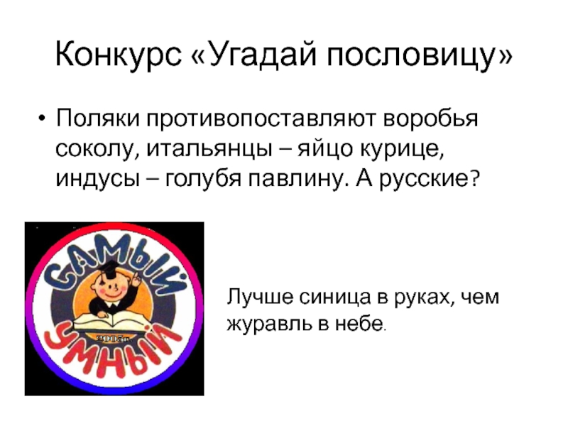 Поляки противопоставляют воробья соколу, итальянцы – яйцо курице, индусы