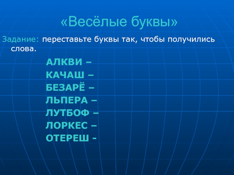 Задание: переставьте буквы так, чтобы получились слова.