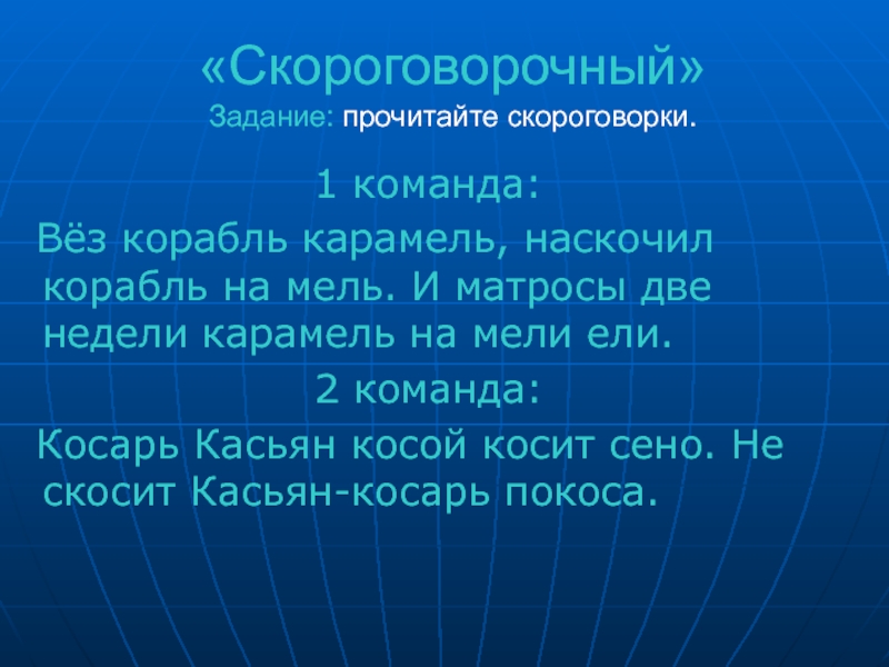 Задание: прочитайте скороговорки.