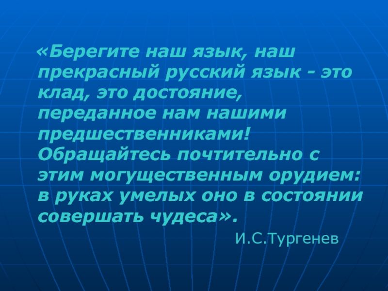 Слайд 2 «Берегите наш язык, наш прекрасный русский язык - это клад,