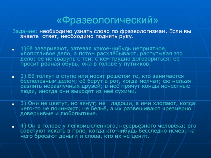 Слайд 9«Фразеологический»