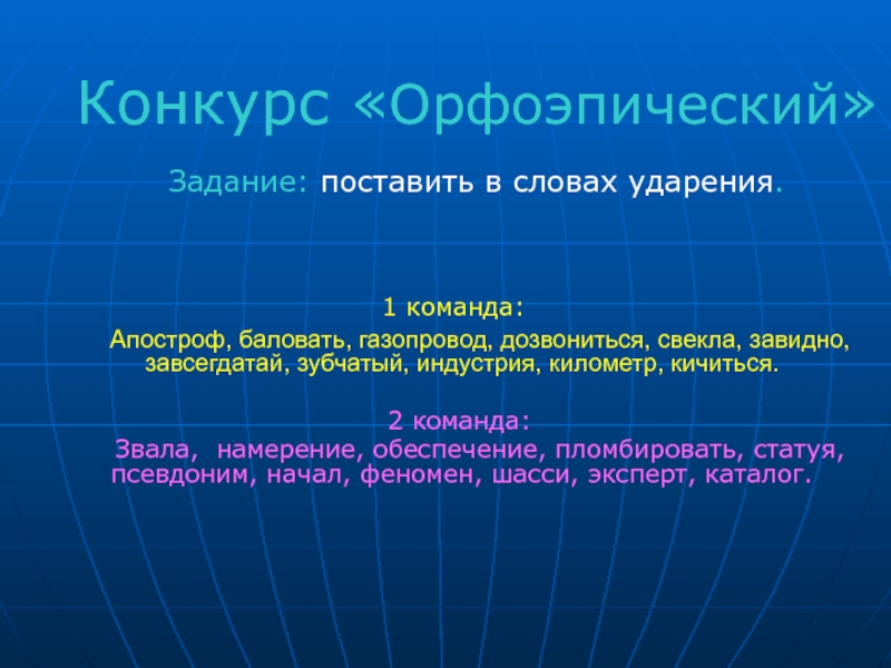 Слайд 4 Конкурс «Орфоэпический»
