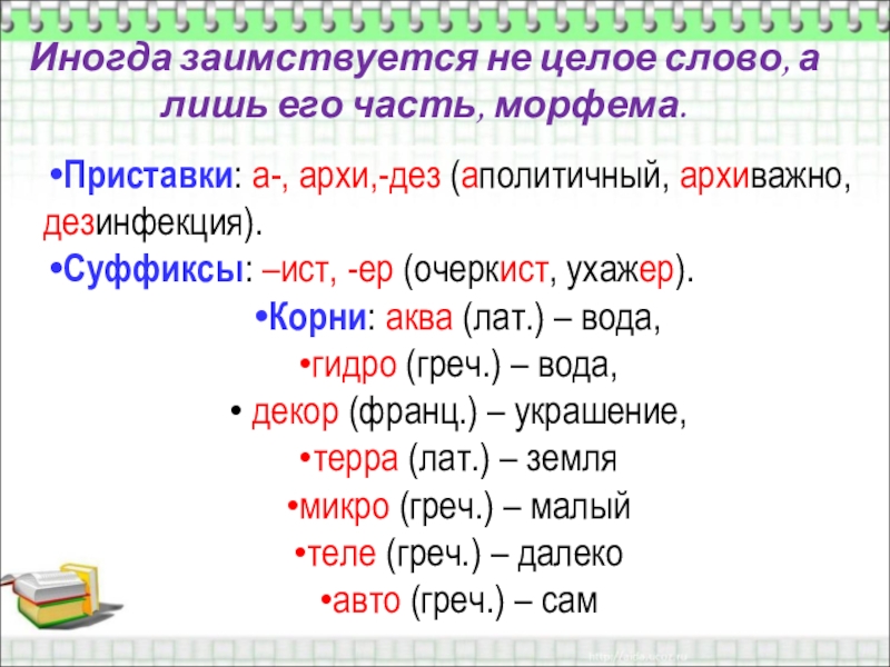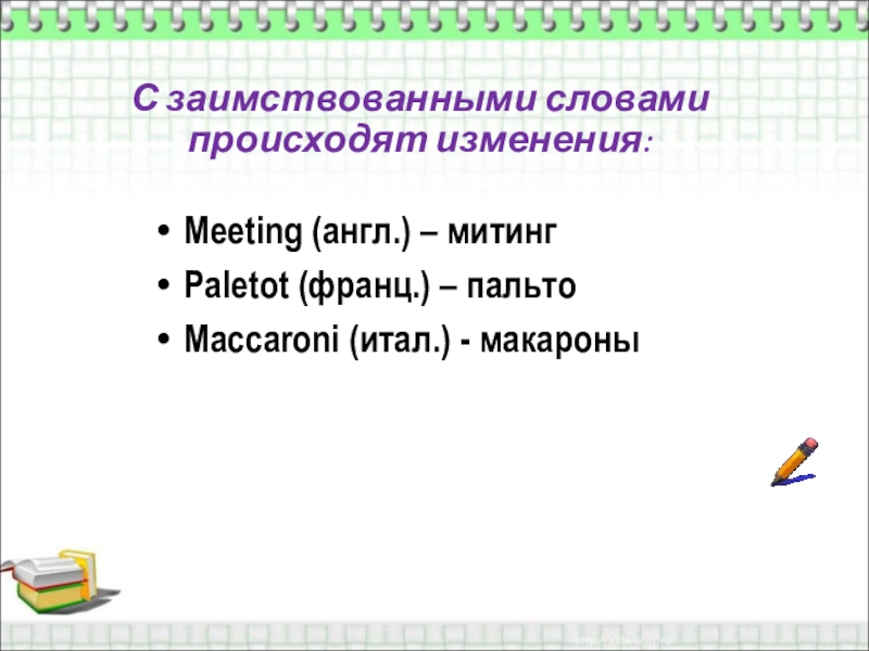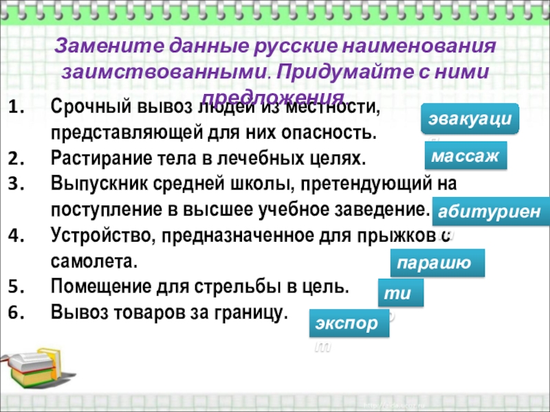 Замените данные русские наименования заимствованными. Придумайте с ними предложения.