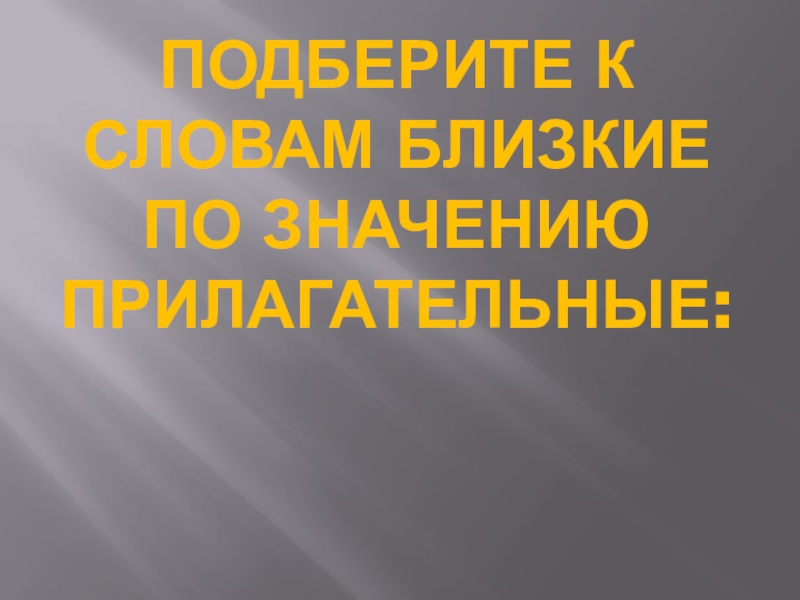 Слайд 1Подберите к словам близкие по значению прилагательные: