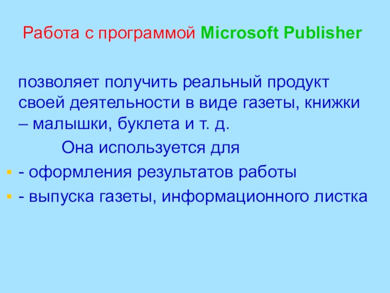 реальный продукт своей деятельности в виде газеты, книжки – малышки, буклета и т. д.