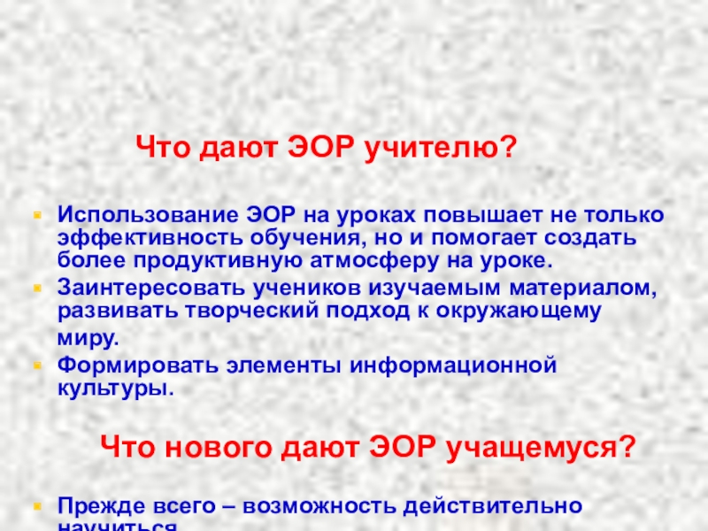 применении информационных технологий, во многом отличаются от целей и задач других учителей – предметников. Задачи эти предполагают работу с текстом, с художественным словом, с книгой. Учителю русского языка необходимо сформировать прочные орфографические и пунктуационные умения и навыки, обогатить словарный запас учащихся, научить их владеть нормами литературного языка, дать детям знание лингвистических и литературоведческих терминов. Бесспорным помощником в решении этих задач являются электронные образовательные ресурсы.