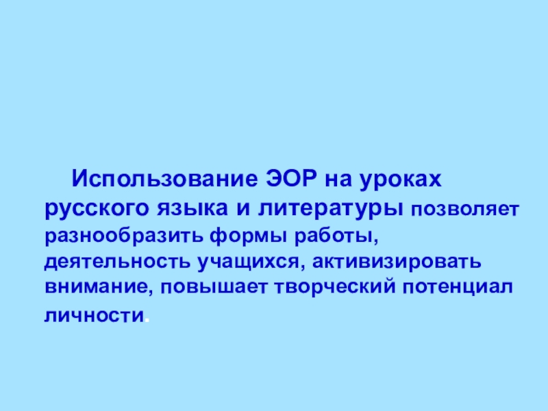Слайд 1«Использование электронных образовательных ресурсов (ЭОР) в преподавании русского языка и литературы»