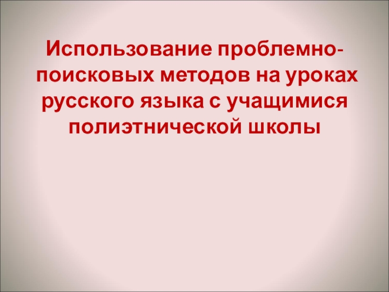 Презентация, доклад Использование проблемно-поисковых методов на уроках русского языка с учащимися полиэтнической школы
