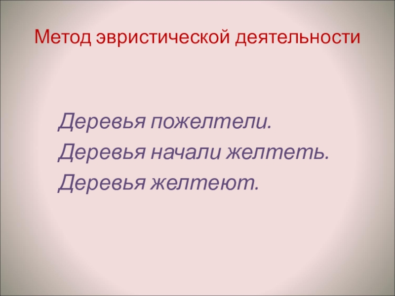 Метод эвристической деятельности		Деревья пожелтели.		Деревья начали желтеть.		Деревья желтеют.