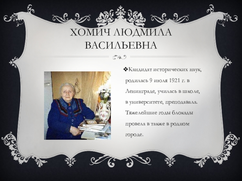 Ленинграде, училась в школе, в университете, преподавала. Тяжелейшие годы блокады провела в также в родном городе.
