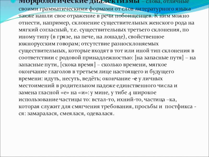 Морфологические диалектизмы – слова, отличные своими грамматическими формами от слов литературного