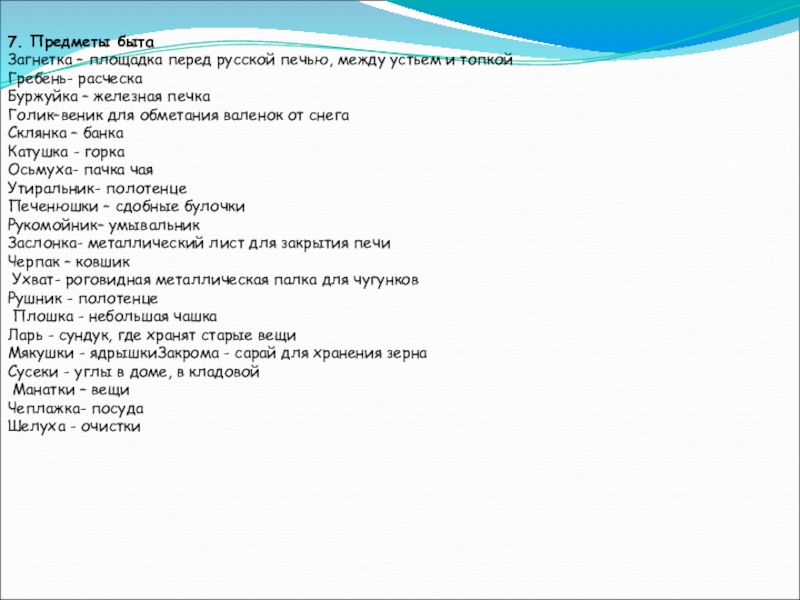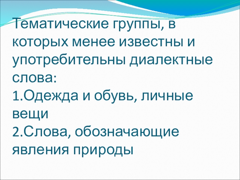 Слайд 30Тематические группы, в которых менее известны и употребительны диалектные слова: