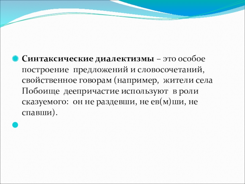 Синтаксические диалектизмы – это особое построение предложений и словосочетаний, свойственное говорам