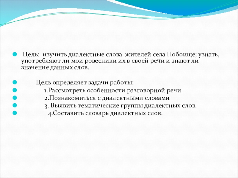 Цель: изучить диалектные слова жителей села Побоище; узнать, употребляют ли