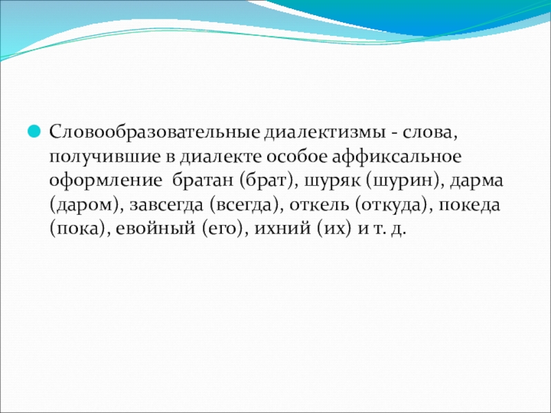 Словообразовательные диалектизмы - слова, получившие в диалекте особое аффиксальное оформление братан
