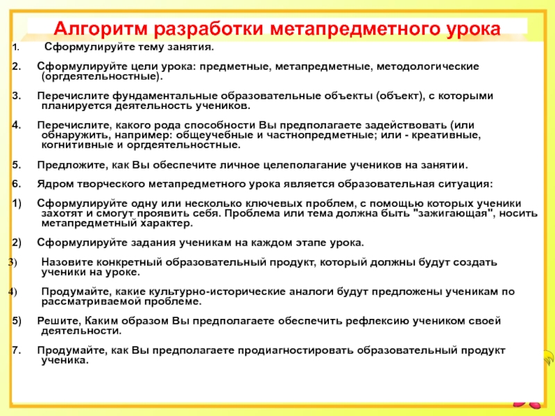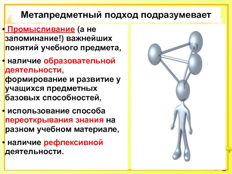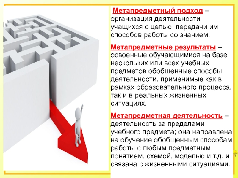 Слайд 7 Метапредметный подход – организация деятельности учащихся с целью передачи им