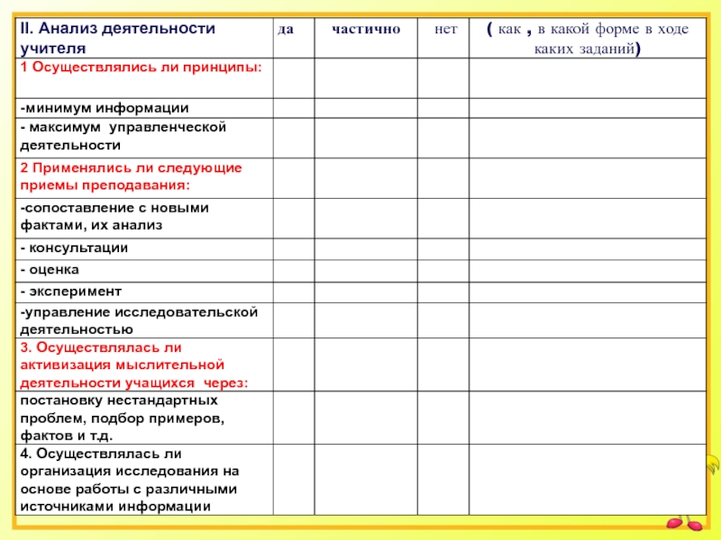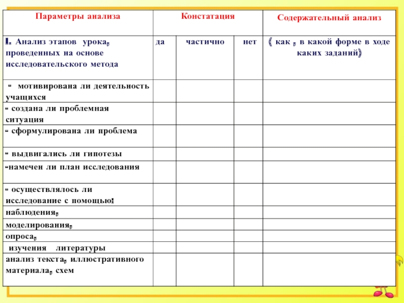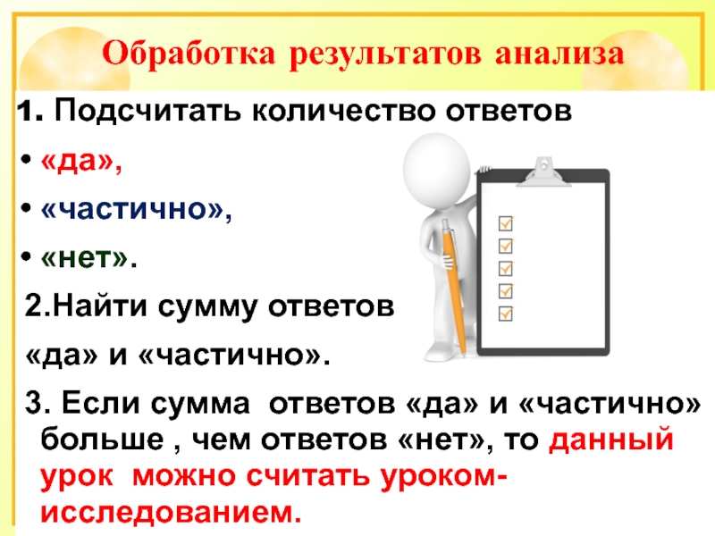3. Если сумма ответов «да» и «частично» больше , чем ответов «нет», то данный урок можно считать уроком-исследованием.