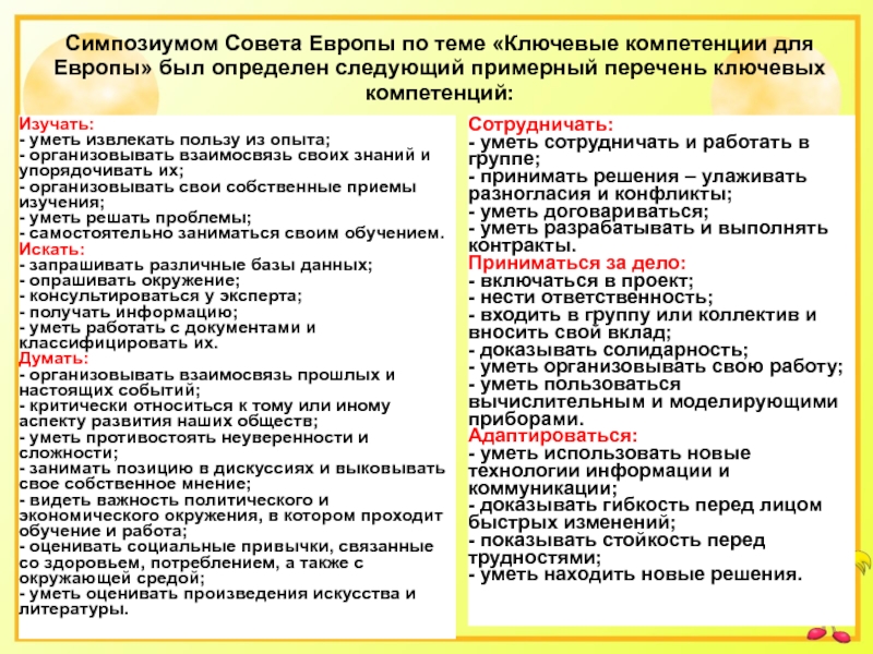 Слайд 2Cимпозиумом Совета Европы по теме «Ключевые компетенции для Европы» был определен