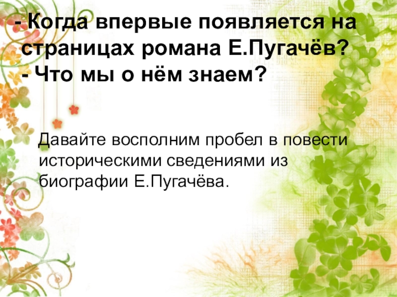 Давайте восполним пробел в повести историческими сведениями из биографии Е.Пугачёва.