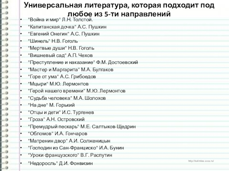 Слайд 15Универсальная литература, которая подходит под любое из 5-ти направлений