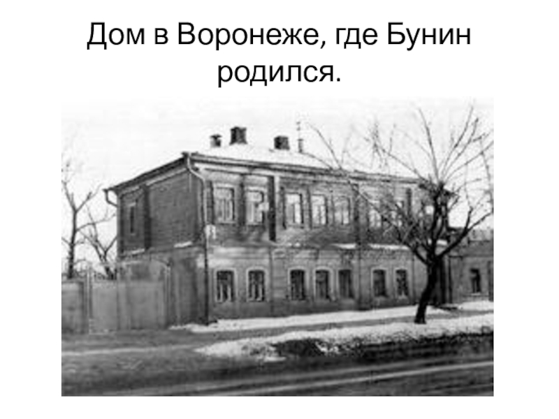 Слайд 2Дом в Воронеже, где Бунин родился.