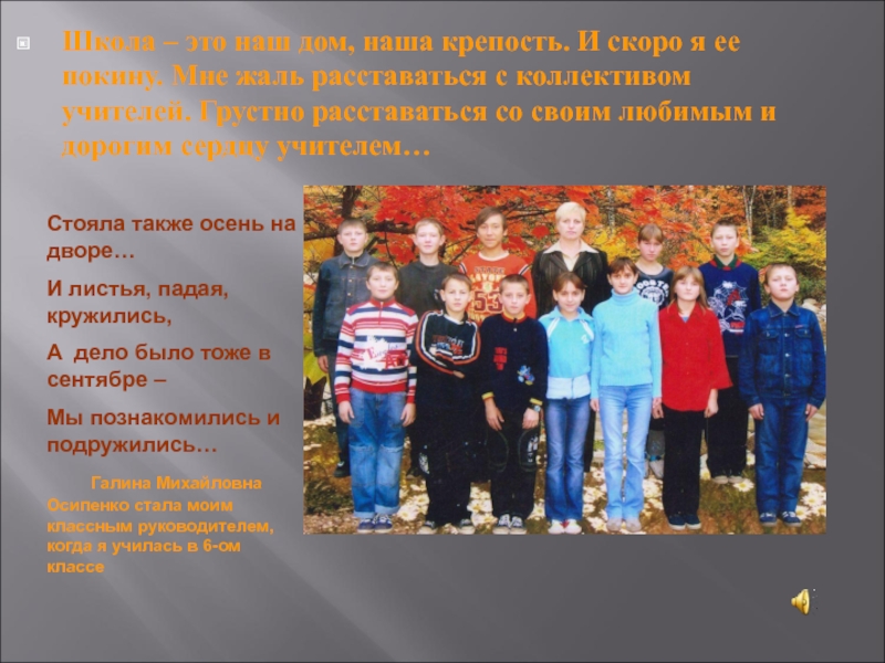 Галина Михайловна Осипенко стала моим классным руководителем, когда я училась в 6-ом классе