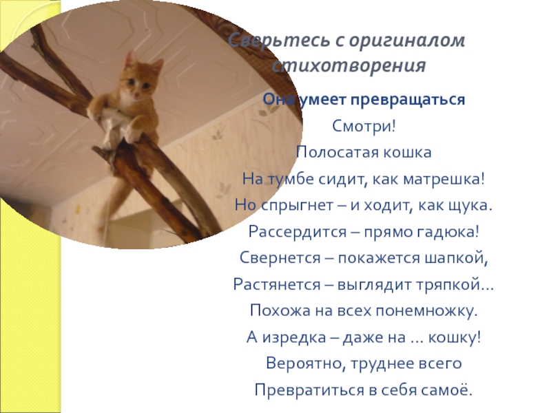 Слайд 24Сверьтесь с оригиналом стихотворения Владимира Орлова