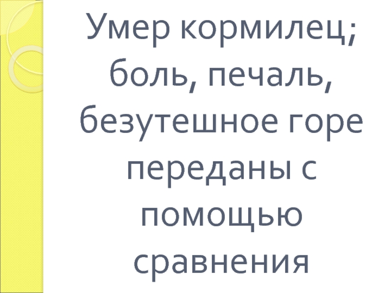 Слайд 20Умер кормилец; боль, печаль, безутешное горе переданы с помощью сравнения