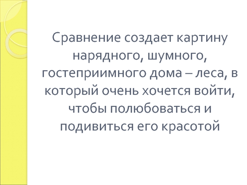 Слайд 16Сравнение создает картину нарядного, шумного, гостеприимного дома – леса, в который