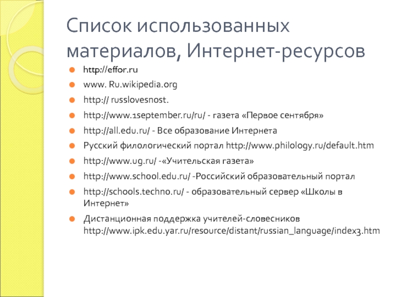 Слайд 29Список использованных материалов, Интернет-ресурсов