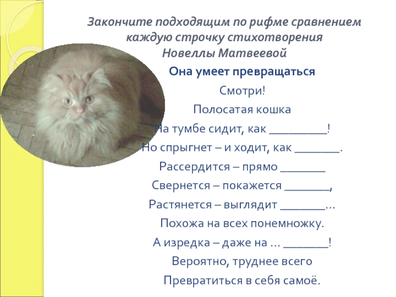 Слайд 6Закончите подходящим по рифме сравнением каждую строчку стихотворения
