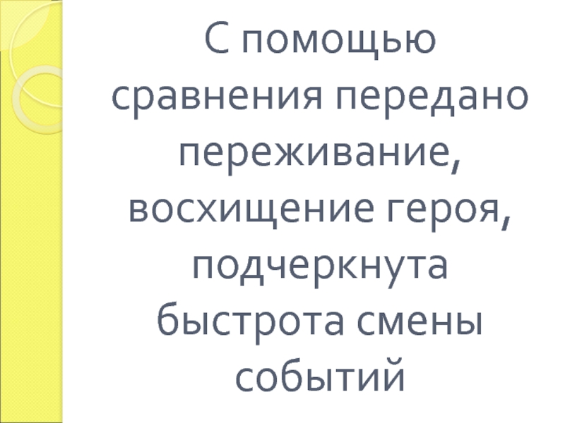 Слайд 22С помощью сравнения передано переживание, восхищение героя, подчеркнута быстрота смены событий
