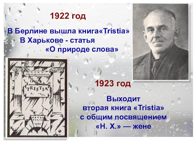 Выходит вторая книга «Tristia» с общим посвящением «Н. Х.» — жене