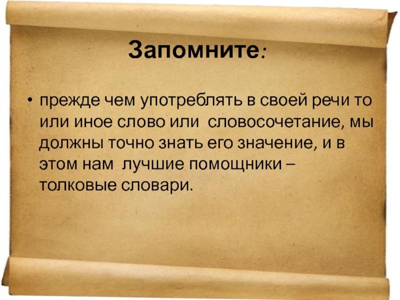 или словосочетание, мы должны точно знать его значение, и в этом нам лучшие помощники – толковые словари.