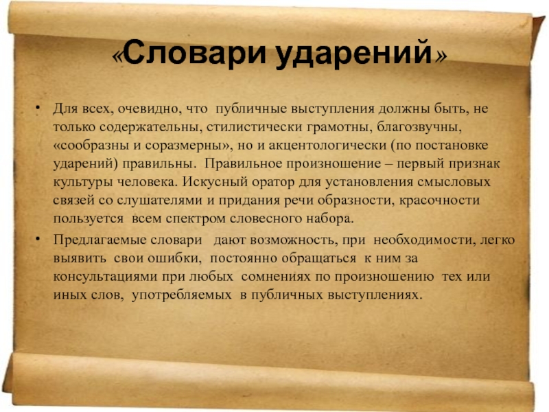 Предлагаемые словари дают возможность, при необходимости, легко выявить свои ошибки, постоянно обращаться к ним за консультациями при любых сомнениях по произношению тех или иных слов, употребляемых в публичных выступлениях.