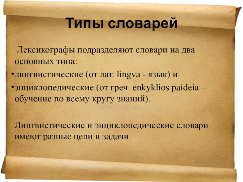 Лингвистические и энциклопедические словари имеют разные цели и задачи.