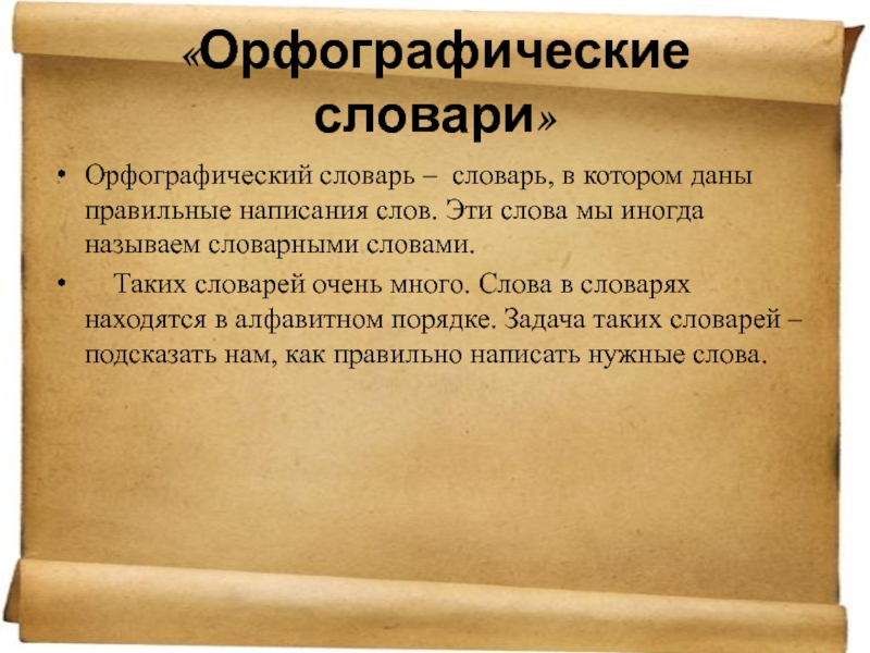 Орфографический словарь – словарь, в котором даны правильные написания слов.