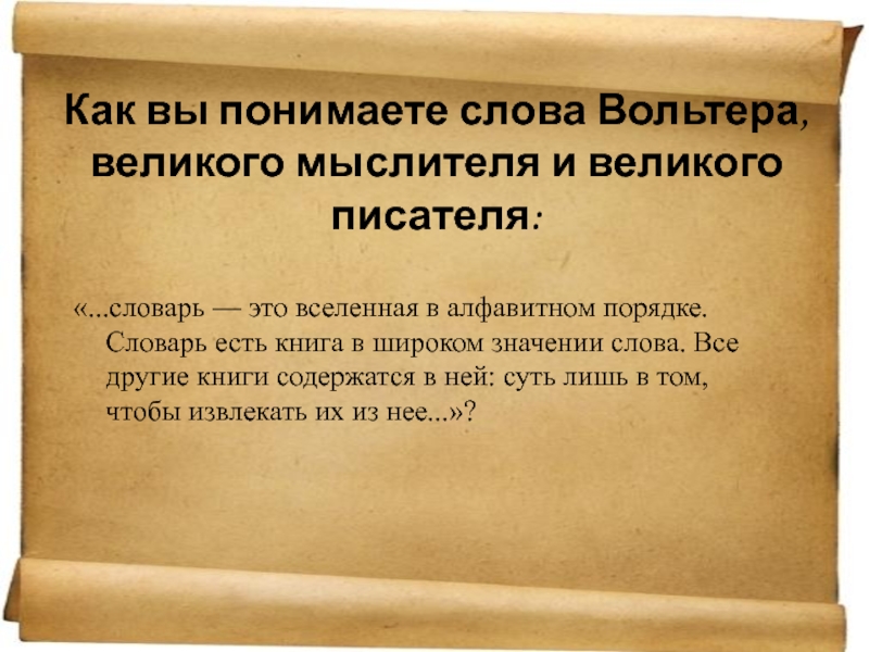 Слайд 3Как вы понимаете слова Вольтера, великого мыслителя и великого писателя: