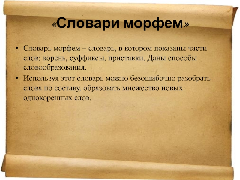 Словарь морфем – словарь, в котором показаны части слов: корень,