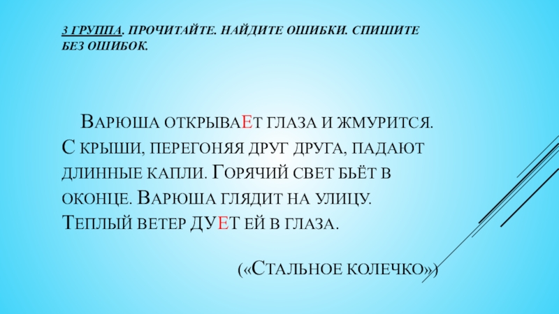 Слайд 213 группа. Прочитайте. Найдите ошибки. Спишите без ошибок.