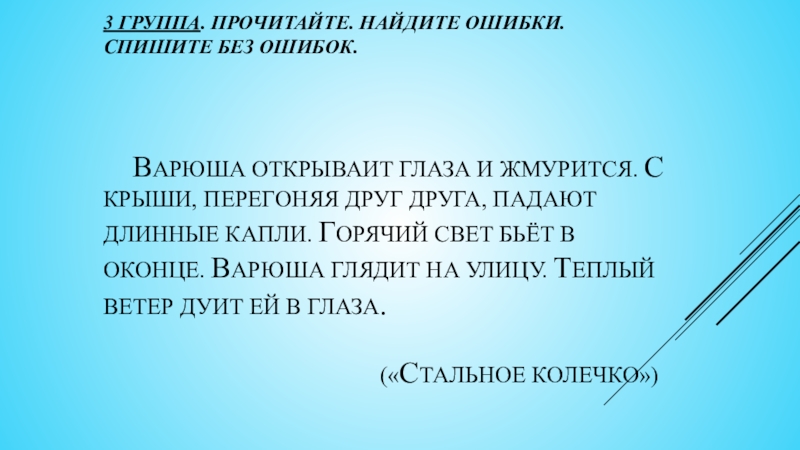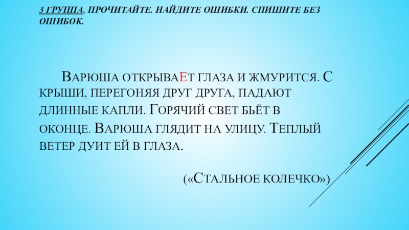 3 группа. Прочитайте. Найдите ошибки. Спишите без ошибок.