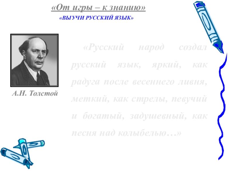 Слайд 16 «Перед вами громада – русский язык. Наслажденье глубокое зовёт вас, наслажденье