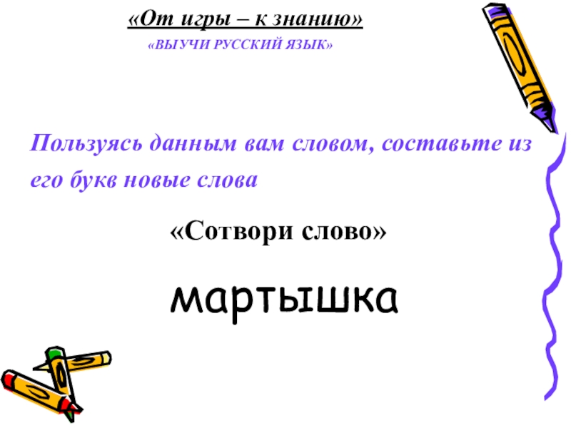 Пользуясь данным вам словом, составьте из его букв новые слова