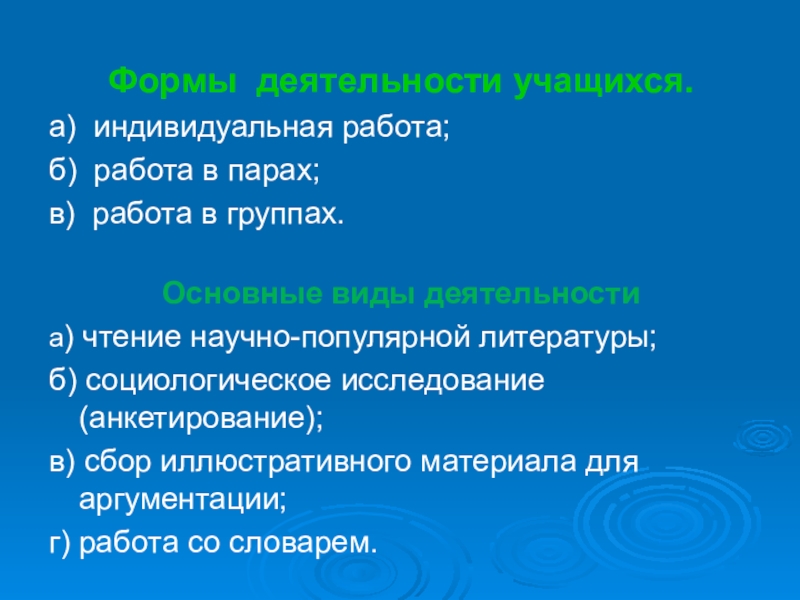 Слайд 8Формы деятельности учащихся.