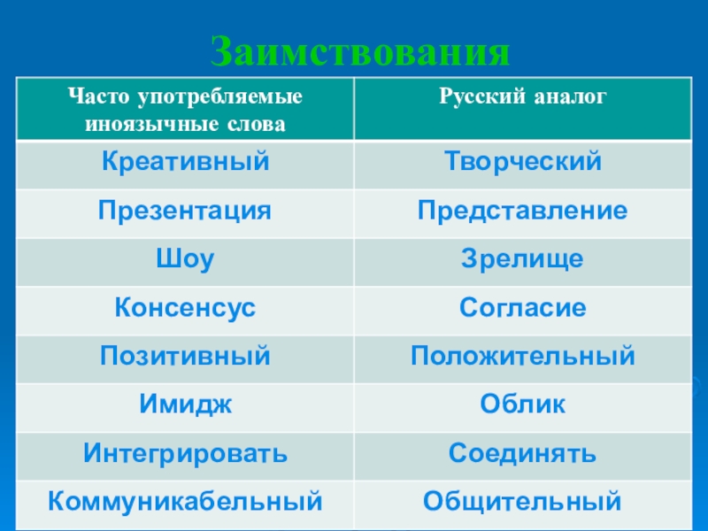 Слайд 19Заимствования