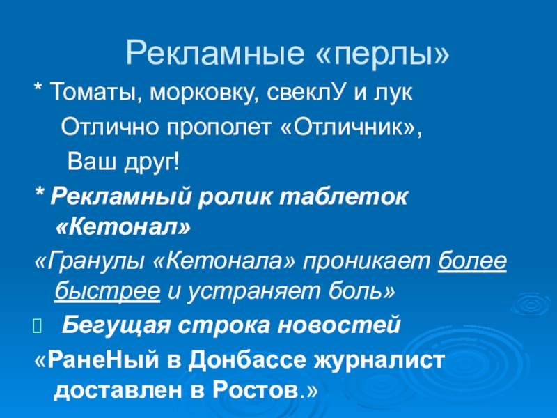 Слайд 30 Рекламные «перлы»