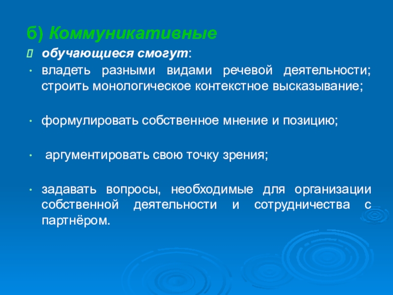 Слайд 10б) Коммуникативные